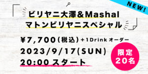 9/13(水) 18:00スタート1名:¥5,500(税込) …