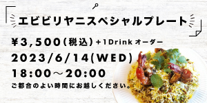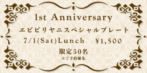 1周年記念イベント / イベント / イベント一覧 7/2(日)【1st Anniversary ランチ】 エビビリヤニスペシャルプレート 7/2(日) 11:00~14:30 LO / 15:00 …