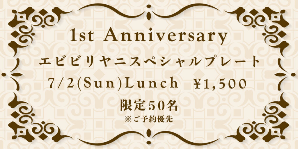 7/2(日)【1st Anniversary ランチ】 エビビリヤニスペシャルプレート