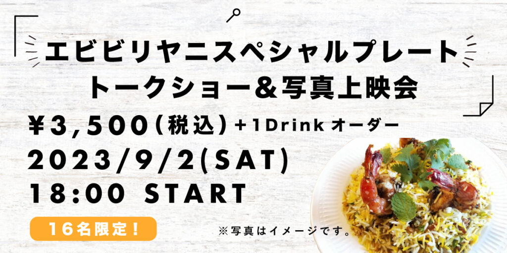 【エビビリヤニプレートディナー付きトークショー&写真上映会】