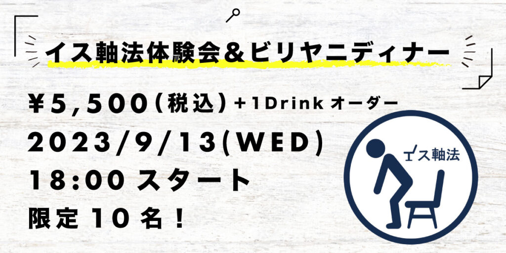 ◼️18:00~20:00 武田先生を講師に迎え『イス軸法体験会』
