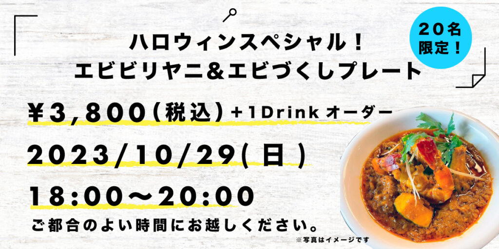 10/29(日) 18:00~20:00のご都合のよい時間にお越しください。