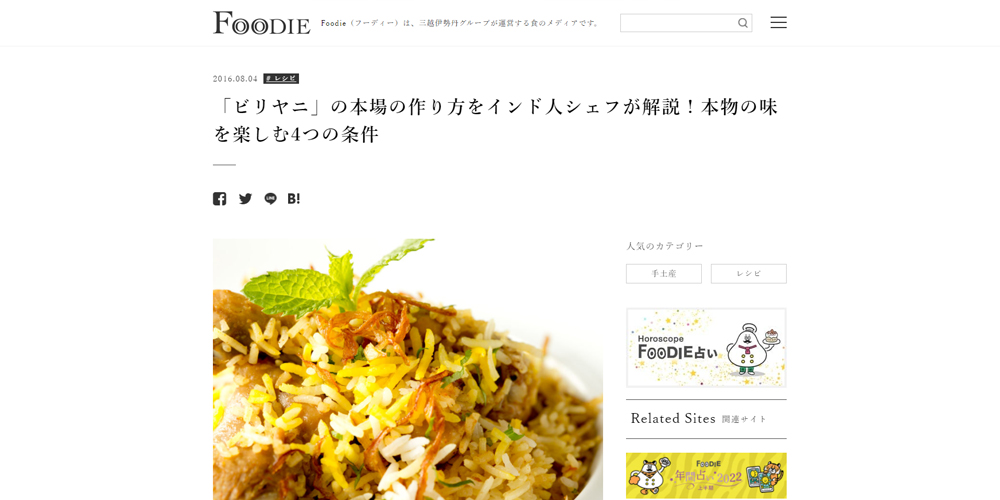 FOODIE(フーディー)に掲載されました。