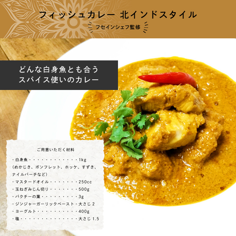 白身魚ならどんなものでも美味しく仕上がるスパイスブレンドです。 マスタードオイルがおすすめですが、ご自宅に無い場合は、オリーブオイルやサラダ油でも可。 煮込み時間も短いので、お手軽に本格的なインドカレーが作れます。
