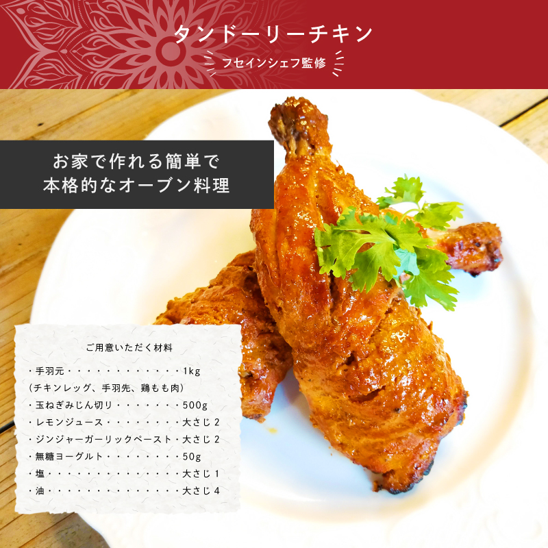 おうちのオーブンや魚焼きグリルで本格的なタンドーリーチキンが作れます。